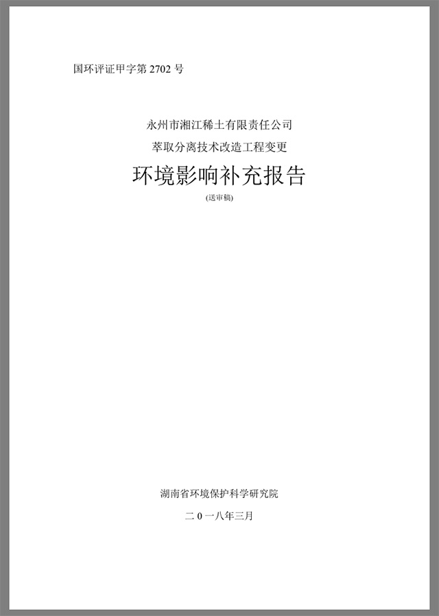 公示:永州市湘江稀土有限責(zé)任公司 萃取分離技術(shù)改造工程變更 環(huán)境影響補(bǔ)充報(bào)告