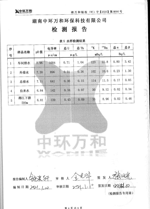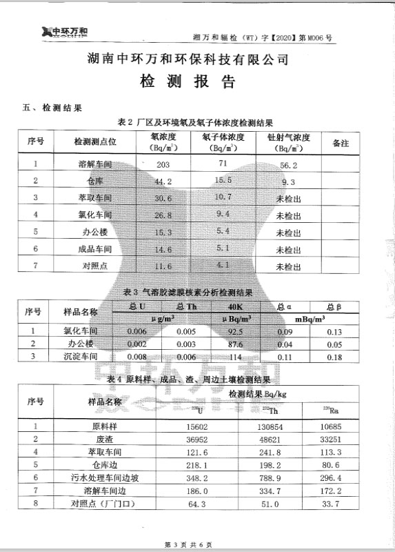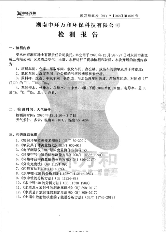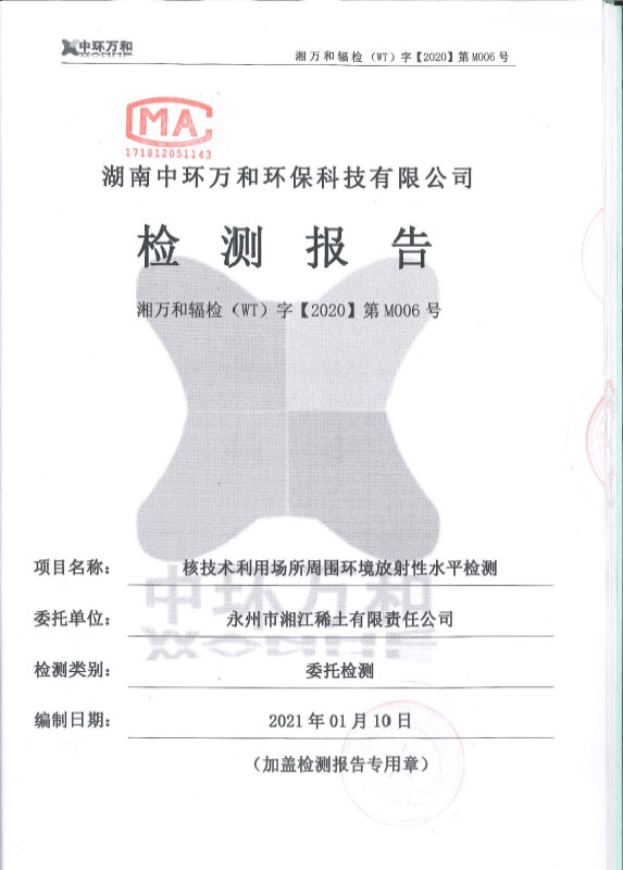 永州市湘江稀土有限責任公司放射性水平檢測報告